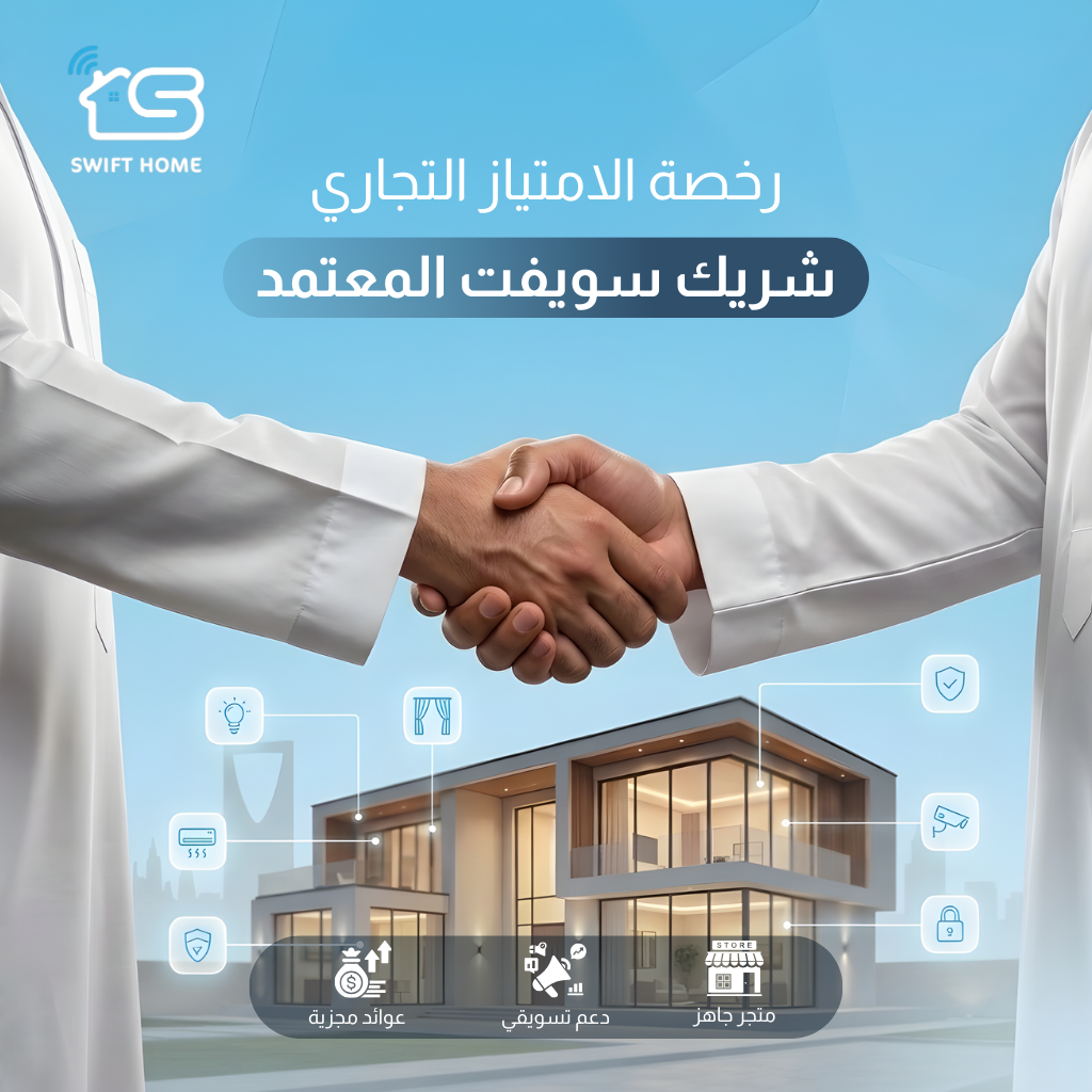 أهلاً بك في نظام سويفت هوم المتكامل. نحن لا نمنحك مجرد حق بيع، بل نقدم لك "بنية تحتية" تقنية ومالية لتأسيس مشروعك الخاص في عالم المنازل الذكية بأقل المخاطر وأعلى العوائد.